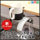 - 上海問屋 アルミ合金製ドリンクホルダー付きヘッドフォンハンガー(ブラック) DN-916189 [在宅ワーク・作業スペース構築]