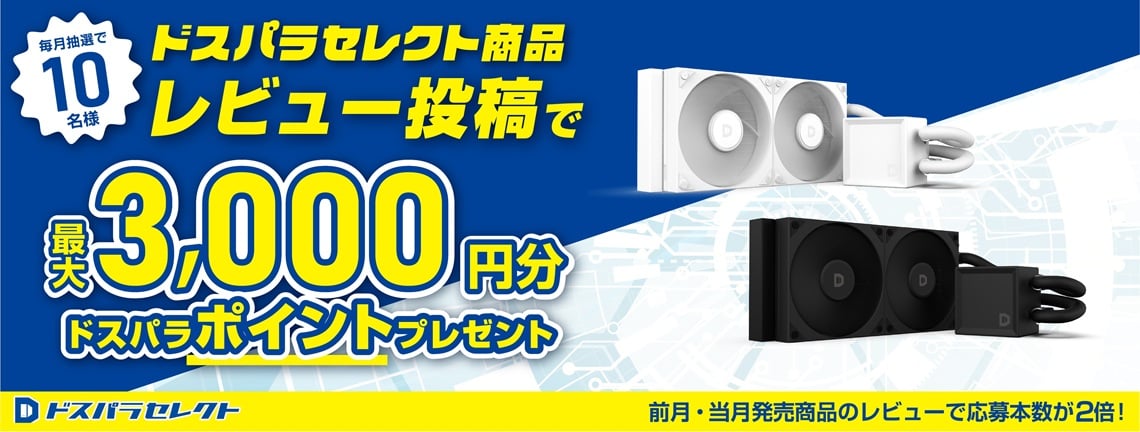 期間中、対象商品を555円以上ご購入されたドスパラ会員様から抽選で、最大5万円分のドスパラポイントをプレゼント!