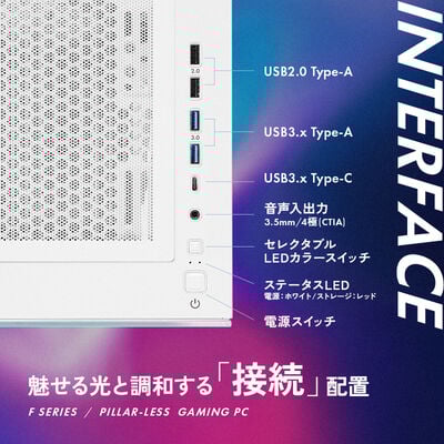 入出力ポート前面:USB 2.0 ×2 、USB 3.2 Gen1 Type-A ×2 、USB 3.2 Gen2x2 Type-C ×1
