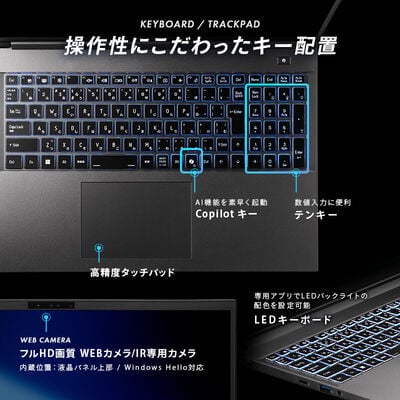 | 標準キーボード | 日本語キーボード (テンキー付 / シングルRGBバックライト搭載) |