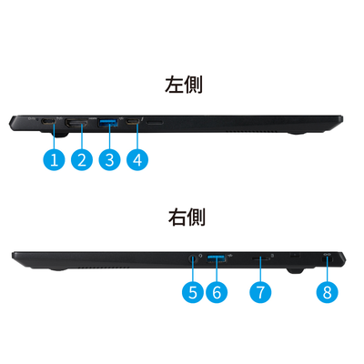 | 入出力ポート | Thunderbolt 4 (Type-C、映像出力 DisplayPort1.4 対応、PD対応/65W) x1 USB3.2 Gen2 (Type-C、映像出力 非対応、PD対応/65W) x1 USB3.2 Gen2 (Type-A) x1、USB3.2 Gen1 (Type-A) x1 HDMI 2.1 Type A x1 マイク入力・ヘッドフォン出力 共用端子 (3.5mm 4極 CTIA) x1 |
