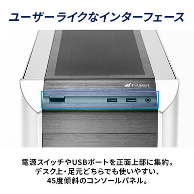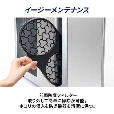 | 入出力ポート | 前面:USB 3.2 Gen1 Type-A ×4、USB 3.2 Gen2 Type-C ×1 背面:USB 2.0 ×1 、USB 3.2 Gen2 ×7、USB 3.2 Gen2×2 Type-C ×1 、USB 4 Type-C ×2 映像出力:HDMI ×1 ※グラフィックボードを搭載しているモデルは、こちらの端子は使用しません。 |