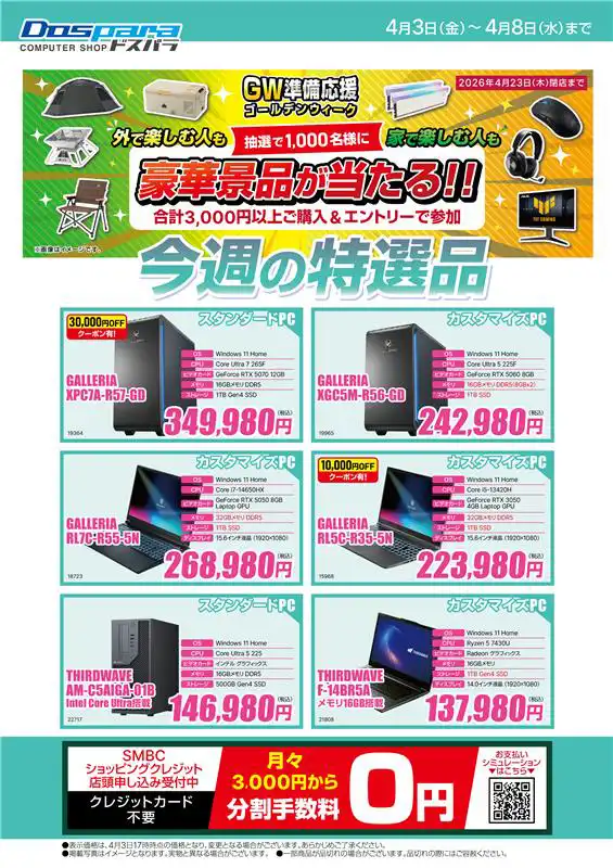 ドスパラ店舗お買い得情報! ドスパラ店舗お買い得情報!