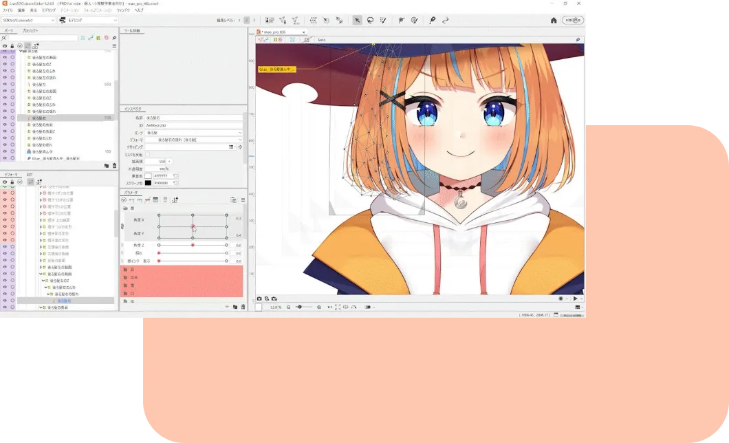 Live2D Cubism Editorは、2Dイラストを動かすためのLive2D制作向け編集ソフトです。